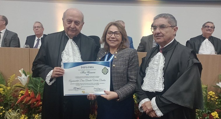 A desembargadora Agamenilde Dias recebeu a Medalha do Mérito Eleitoral Frei Caneca, em reconhecimento ao trabalho em favor da cidadania e da democracia no país.