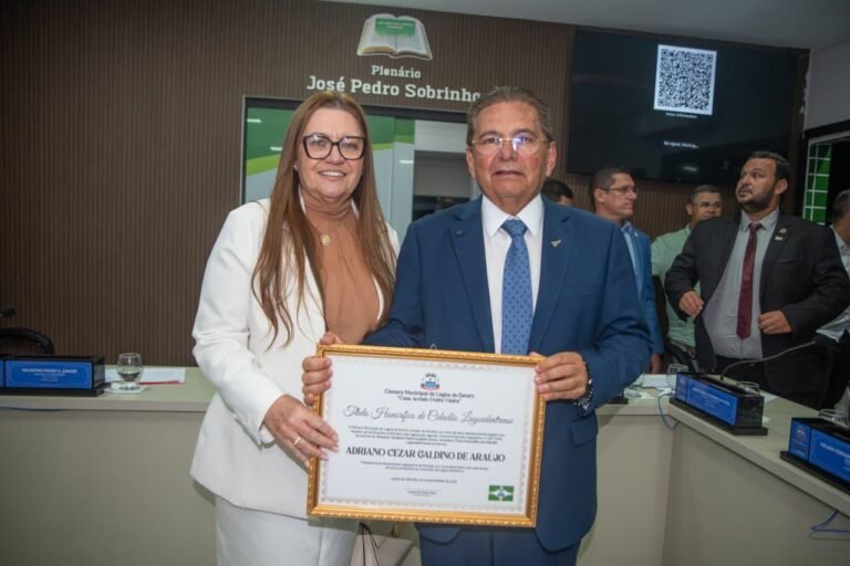 “Este momento é de grande alegria e realização para mim. Gostaria de agradecer ao vereador Valdemir e a todos os vereadores que, por unanimidade, me concederam esta honraria. Receber o título de cidadão, especialmente de Lagoa de Dentro, é uma distinção que muito me honra e me deixa extremamente feliz. Me comprometo a trabalhar arduamente para o desenvolvimento de Lagoa de Dentro, buscando uma cidade cada vez melhor e mais justa para todos”, ressaltou.