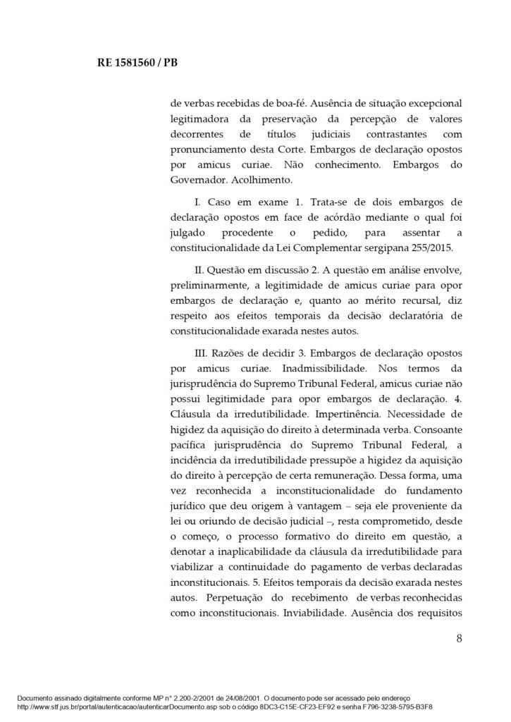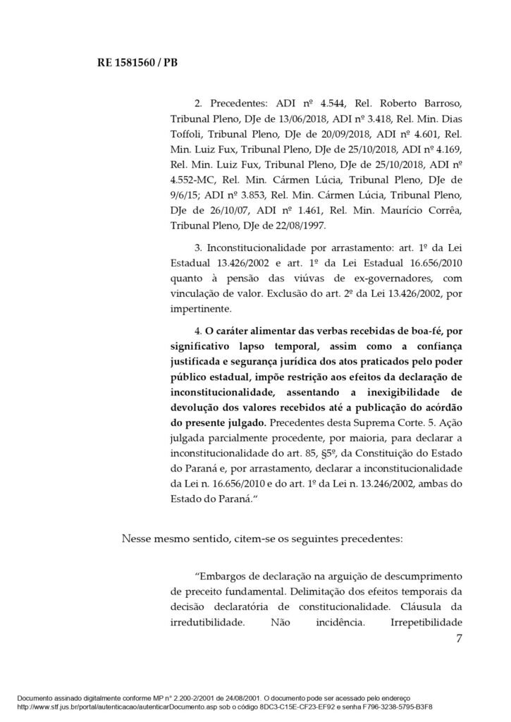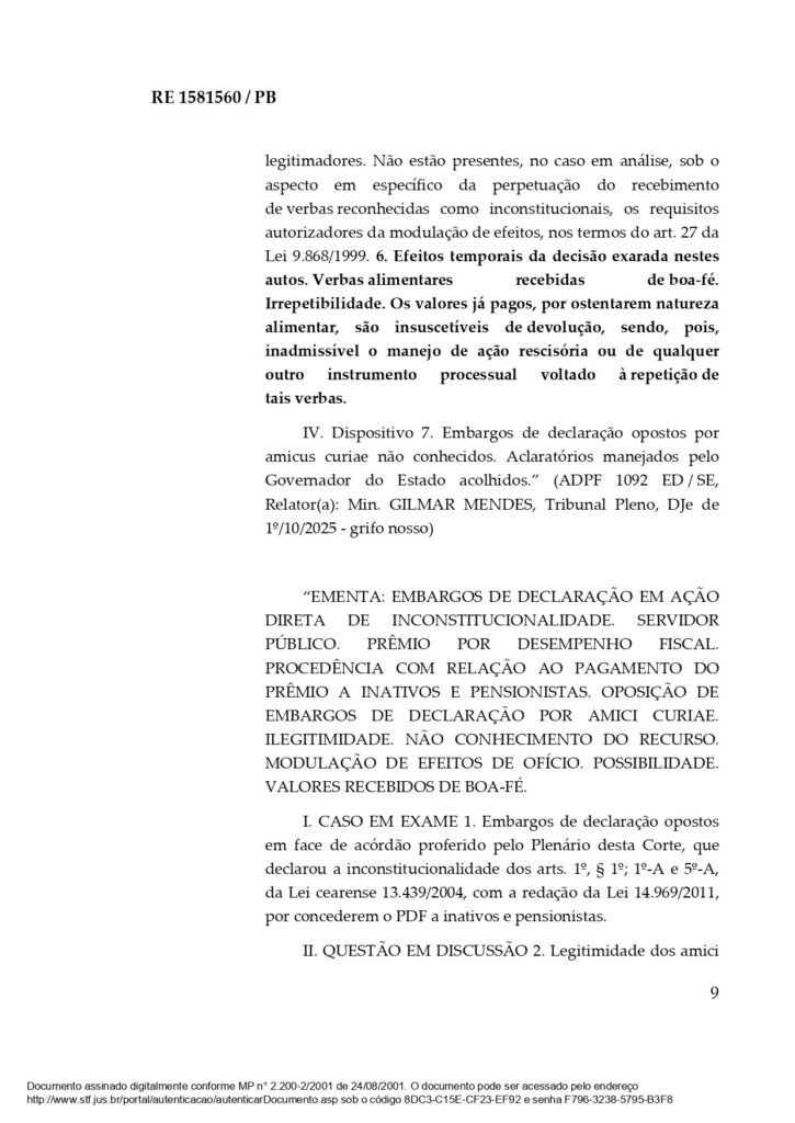- Irrepetibilidade de Verbas: Por se tratar de verba alimentar recebida por interpretação administrativa da época, o STF aplica o princípio da não devolução.