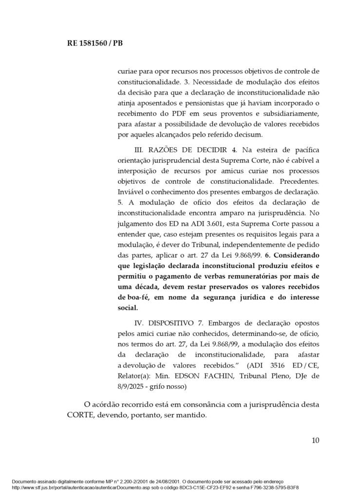 - Modulação de Efeitos: A decisão segue a jurisprudência recente da Corte (como na ADI 3516), que ao declarar inconstitucional certas pensões, modula os efeitos para afastar a devolução de valores já pagos.