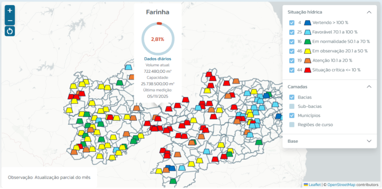 A partir do dia 17 de novembro, diversos bairros de Patos, no Sertão da Paraíba, passarão por um rodízio no abastecimento de água. A Companhia de Água e Esgotos da Paraíba (Cagepa) informou que a Barragem da Farinha, responsável por abastecer o município, entrou em colapso hídrico e já opera com volume morto, o que motivou a adoção da medida.