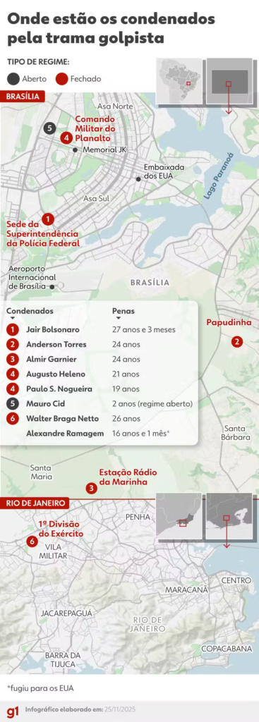 Infográfico – Infográfico – Mapas mostram localização dos presos e condenados pela trama golpista. — Foto: Arte/g1