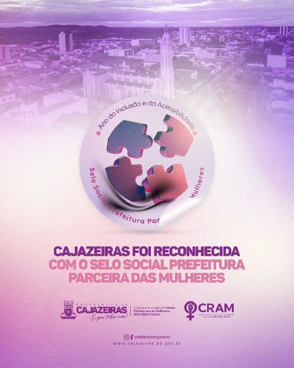 A cidade de Cajazeiras foi reconhecida pelo Governo do Estado da Paraíba com o Selo Social Prefeitura Parceira das Mulheres, um importante reconhecimento às ações, políticas públicas e iniciativas desenvolvidas para fortalecer os direitos, a proteção e o protagonismo feminino em nossa cidade.