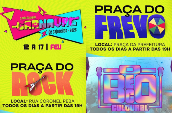 A Prefeitura de Cajazeiras mantém espaços voltados a públicos que preferem outros ritmos, com as tradicionais Praças do Frevo, do Rock e o Beco Cultural, todos no centro da cidade. As programações começam às 19h e seguem do sábado (14) à terça-feira (17).
