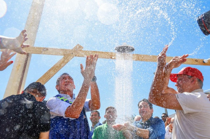 Centenas de pessoas estavam reunidas na praça central do município de Desterro (PB), nesta quinta-feira (12), quando o ministro da Integração e do Desenvolvimento Regional, Waldez Góes, abriu as torneiras de dois chuveiros instalados na área pública. Foi uma cena histórica: a chegada da água em uma região do Sertão do Pajeú que sobreviveu por décadas com a escassez hídrica. O ministro não pensou duas vezes e entrou debaixo da chuveirada, comemorando, junto com a população, a inauguração do Ramal do Desterro e da Adutora do Pajeú realizada durante visita da comitiva do Caminho das Águas na região.