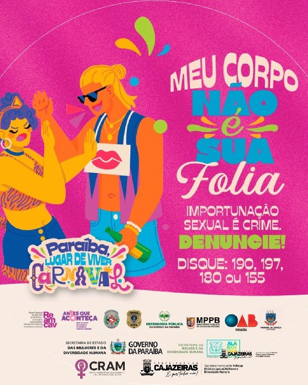 “Levar essa campanha para cidades como Cajazeiras, que realiza o maior Carnaval da Paraíba, é fundamental, porque garante que a informação e a proteção cheguem a todas as regiões do estado. O Carnaval é um momento de alegria, mas também de responsabilidade e respeito às mulheres”, destacou Léa Silva.