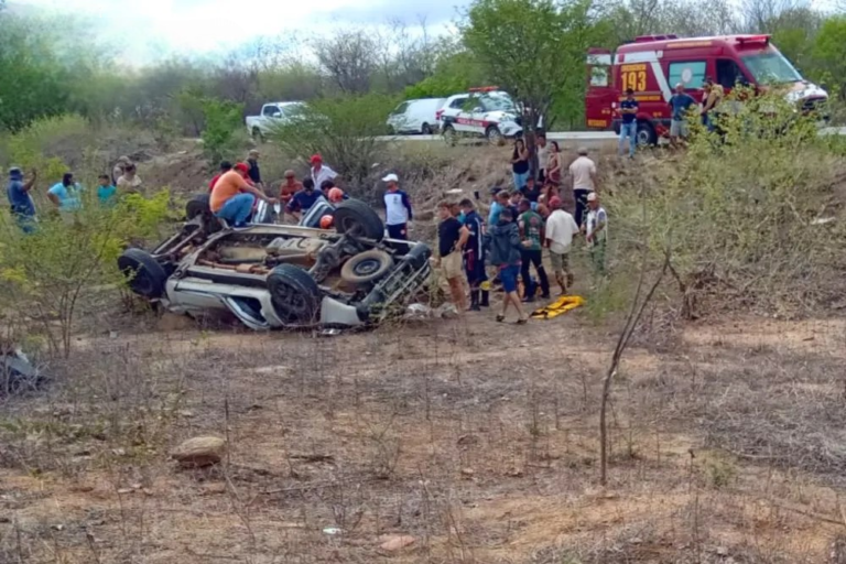 Capotamento na BR-230 deixa um morto e seis feridos, incluindo duas crianças, entre Aparecida e Pombal