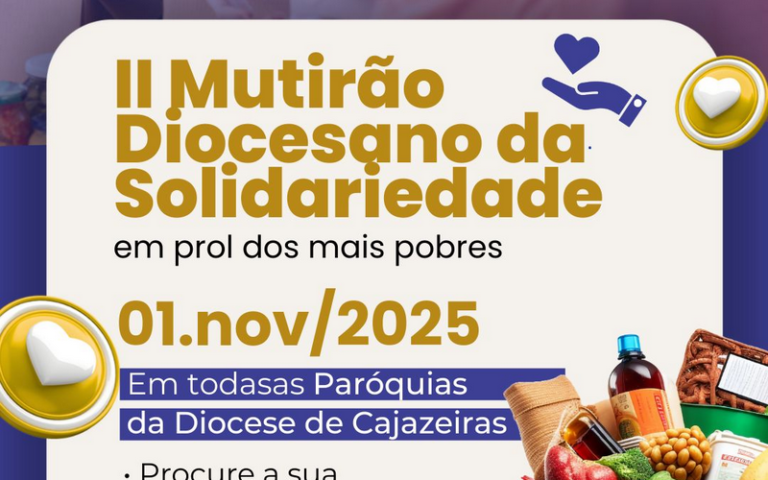 No próximo dia 1º de novembro de 2025, a Diocese de Cajazeiras promoverá o II Mutirão Diocesano da Solidariedade, uma grande mobilização em todas as paróquias, unindo forças para ajudar famílias em situação de vulnerabilidade social.