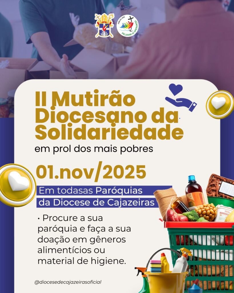 No próximo dia 1º de novembro de 2025, a Diocese de Cajazeiras promoverá o II Mutirão Diocesano da Solidariedade, uma grande mobilização em todas as paróquias, unindo forças para ajudar famílias em situação de vulnerabilidade social.