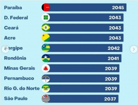 Apenas o Mato Grosso seguirá tendo crescimento populacional, não havendo previsão de decréscimo ao menos nos próximos 45 anos. Outros dois destaques são Santa Catarina e Roraima, que devem observar decréscimos apenas em 2064.