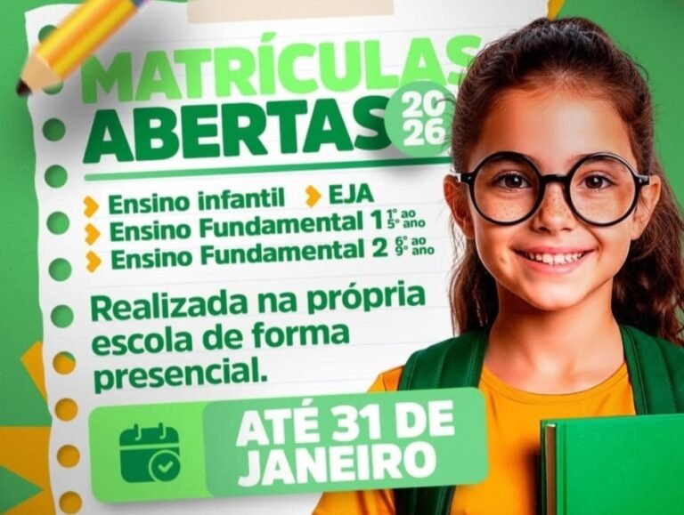 A Secretaria Municipal de Educação deu início no mês de dezembro de 2025 à renovação das matrículas dos estudantes da rede municipal de ensino e segue no mês de janeiro de 2026 com renovações e novas matrículas. Todo processo pode ser realizado presencialmente na escola, no turno da manhã, até o dia 31 de janeiro.