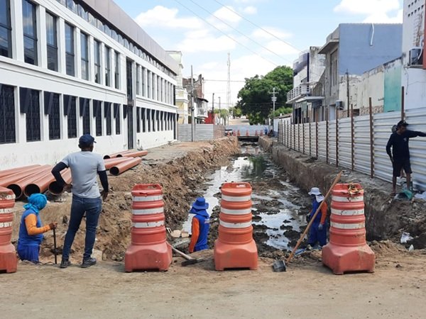 A obra do canal da Travessa Joaquim Costa está sendo executada por meio de parceria entre o município e o Governo do Estado.