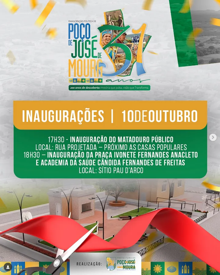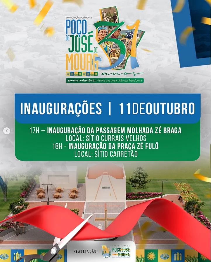 Todas as ações fazem parte do calendário oficial de obras e festividades que marcam o aniversário de Poço de José de Moura, celebrado sob o tema “200 anos de descoberta: história que pulsa, visão que transforma”, destacando o orgulho e a evolução de um município que segue crescendo com planejamento e participação popular.