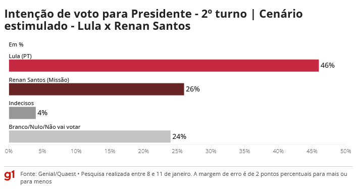 - Lula (PT): 46%;
