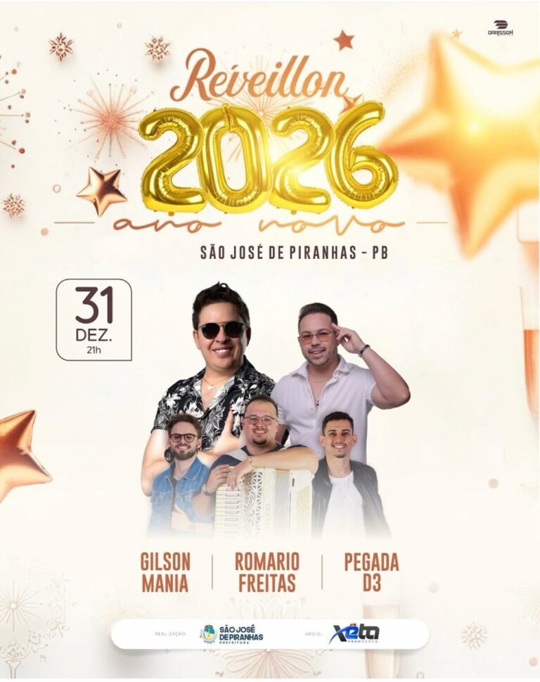 A cidade de São José de Piranhas já vive o clima de festa e expectativa para a chegada de 2026. No próximo dia 31 de dezembro, a partir das 21h, a Praça Central será palco de um grande Réveillon, que promete reunir moradores, famílias inteiras e visitantes em uma noite especial de celebração, alegria e confraternização.