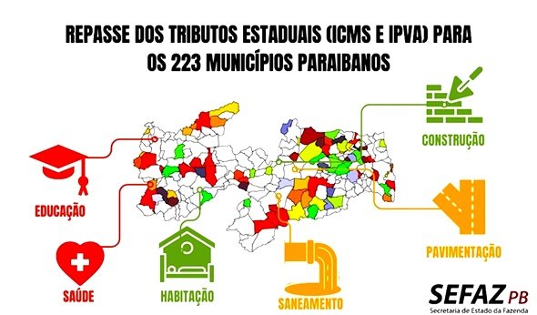 A Secretaria de Estado da Fazenda (Sefaz-PB) repassou R$ 2,911 bilhões em impostos estaduais (ICMS e IPVA) para as prefeituras paraibanas em 2025, o que representou um aumento de 7,85% sobre o ano de 2024. Em valores reais, o acréscimo foi de R$ 212 milhões.