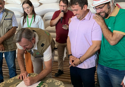 Durante a solenidade, o prefeito Helder Carvalho assinou o termo de cooperação técnica com a Conab, ao lado de secretários municipais, vereadores e representantes da Companhia. O gestor destacou que o novo Polo representa um avanço para os produtores, garantindo acesso facilitado ao milho usado na alimentação animal e contribuindo para a redução dos custos de produção.